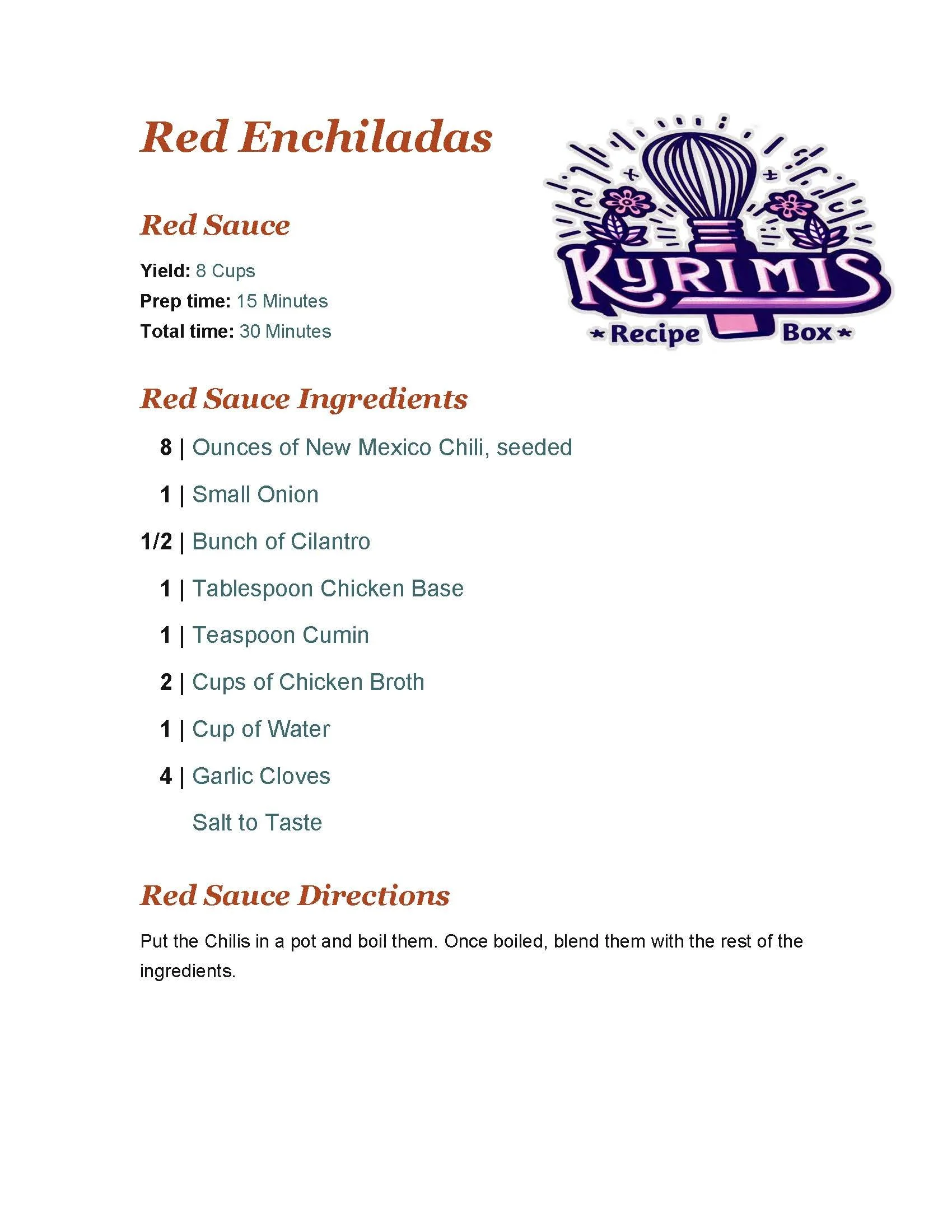 Red Enchiladas DinnerLunchEntree May 13 Written By Jennifer Kyrimis Check out the recipe Enjoy cooking, and let me know how it turns out for you! DinnerLunchEntree Jennifer Kyrimis https://KyrimisRecipeBox.com